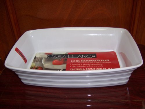 Fine quality stoneware baker and serving dish in simple elegant white.Oven, microwave and dishwasher safe.Goes with ease from oven to table to refrigerator.2.8 Qt rectangular, measures 13" long, by 9" wide, by 3" deepStoneware Ceramic Oven-to-table 2.8 Qt Rectangular Baker -- Oven, Microwave and Dishwasher Safe -- Elegant White Specifications | Sale - Review & Buy at Cheap Price
